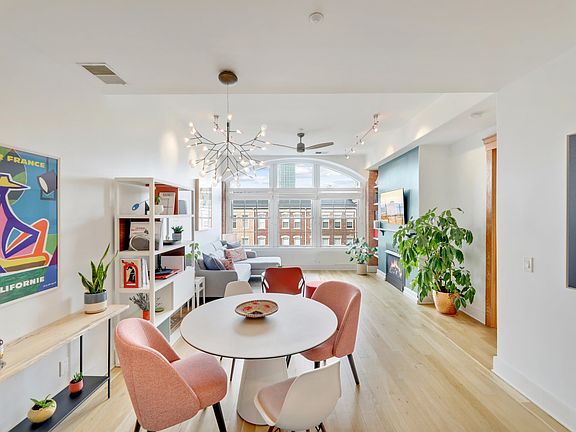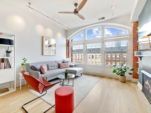 Right out of today's top design magazines awaits this gorgeous, high floor 2 bedroom, 2 bath, stunner in the iconic Sugar House! Residence 4D has been masterfully renovated to the highest of standards. One of only five homes in the entire building to feature magnificent arched Pella architectural windows, allowing brilliant light to flow seamlessly throughout the entire abode. A private entry foyer ushers you to the brilliant open concept living room, dining room, and kitchen. This grand entertaining space is light, airy, and luxurious. Soaring ceiling heights, exposed brick detail and stunning blonde hardwood floors throughout, an open flame gas fireplace, custom LED lighting w/Lutron dimmers, modern ceiling fans w/remotes, and beautiful carpentry. Your chef's kitchen includes only the best Viking appliances, carrara bianco full slab quartz countertops and backsplash, undercounter lighting, and jaw dropping azure blue lower cabinetry with contrasting "snow" uppers. The massive primary suite is your own private lair, with deep walk-in closet, and a stunning primary bathroom with imported Spanish tile, 2 person shower, and furniture grade vanity. On the other side of the home awaits another lovely bedroom and full tumbled marble bath. Located directly on the Paulus Hook waterfront, the renowned Sugar House features 24 hour concierge/security, fully equipped gym with Pelotons, steam room, dry sauna, trainer changing rooms, and a spectacularly manicured resident outdoor terrace with mature plantings, professional grade gas grills, lounge, dining, and play areas. Enjoy this magnificent neighborhood with the best dining, nightlife, shopping, parks, boardwalk, coveted PS16/Bradford school district, and the new Whole Foods market right up the street. Minutes to NYC via Path, Ferry, or car, as well as the NJ Turnpike, and shore points.