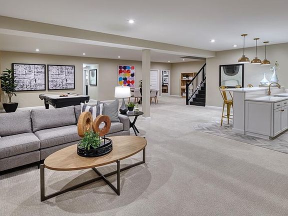June delivery! Generously appointed home with upgraded features throughout including a spacious great room with a gas fireplace, high volume ceilings and center-meet doors leading onto a covered deck with full set stairs to grade; gourmet kitchen boasting white cabinets with LED underlighting and matte black hardware, quartz countertops, walk-in pantry, an impressive sized center island an adjacent dining nook; lavish primary suite showcasing tray ceiling, extra windows, an immense walk-in closet and a deluxe bath with a barn door and frameless glass walk-in shower; two additional bedrooms; a second bath with double sinks; a convenient laundry with white upper cabinets; a walk-out basement offering a rec room with wet bar pre-plumb-in. You'll also appreciate luxury vinyl plank flooring on the main level. Visit today