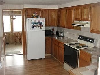Ranch style home with convenient backyard Surprising open floor plan includes fully applianced kitchen with wood cabinets, laminate floors and tile counters open to good size living room plus a front to back family room 3 bedrooms and 1 bathroom Plenty of off street parking in driveway Quiet neighborhood Oil heat Utilities not included Washer Dryer hookup tenant responsible for heat, electricity, hot water, sewer, plow and property maintenance