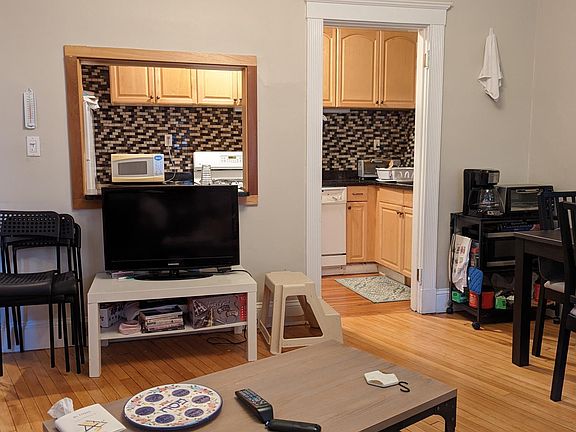 This is a very nice three bedroom apartment on a raised first floor of a lovely building in Washington Square! This apartment is spacious and renovated. It features gleaming hardwood floors throughout, renovated with a dishwasher/stone counter top, three large bedrooms and large living room. Heat and hot water are included. Parking may be available available for extra. The C line is only two blocks away. Heat, hot water, water, and sewer are included in the price of rent.