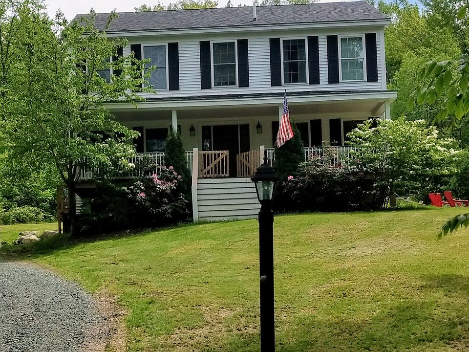 Great home on private lot. This colonial sits on 4.6 acres at the end of a private road and is surrounded by hundreds of wooded acres. 3 bedrooms and 1.5 bathrooms. The master bedroom has two large walk in closets and a plumbed out ready to be finished master bathroom. Front to back living room with hardwood floors and pellet stove. Dining room has hardwood floors. Kitchen has tile and stainless steel appliances. The basement has been recently finished with a workout room, bar/tv room and storage area. Enjoy peace and quiet on the large farmers porch. Underground electric fence for the dogs covers 3 acres of this property. Washer and dryer on second floor. Close to I-89 easy commute to Lebanon. Contact owner at 603-252-6608.