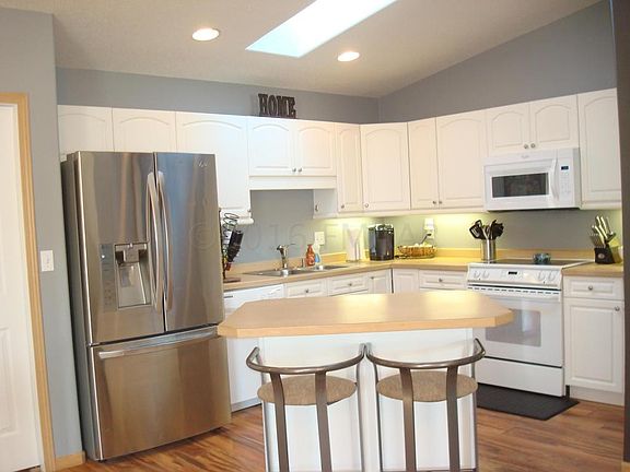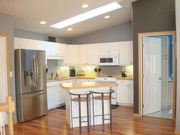 Location, location, location! Dakota Development built twinhome ''C'' floor plan with the open kitchen design. White cabinets with lighting underneath, island, pantry, recessed lighting, skylight in kitchen & bathroom. Electric fireplace in family room, each bathroom has tiled floors, fenced yard & large wood deck. Fresh paint, clean & well maintained! Garage is heated with electric baseboard. All appliances & Washer/Dryer included. Super low specials only $996 left! Furnace serviced & new water heater installed in Oct 2016.