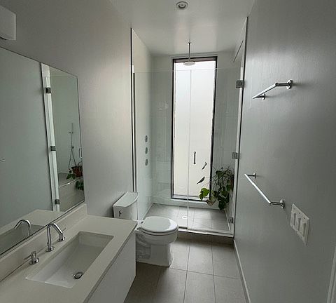 Top floor includes living room and kitchen as well as a bedroom and gorgeous full bathroom. Back deck is accessible from this bedroom. Lower level includes the primary suite with floor to ceiling glass windows, a large, expanded closet and full bathroom. Also on this lower level is the 3rd bedroom with its own full bath. A second living room/family room is on this floor with washer and dryer. Built in 2016, a stunning contemporary new construction of boutique two unit condo bldg in heart of Shaw. Dramatic floor to ceiling glass windows with light pouring in. Thoughtful floor plan with high end finishes and materials. Multiple level living with a nice sized back deck outdoor space. 3brs/3bas. Nearly 1600 sq ft