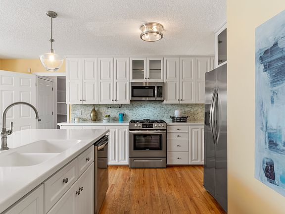 - Kitchen Features: Eat-in Kitchen, View to Family Room, Kitchen Island, Solid Surface Counters, Cabinets White