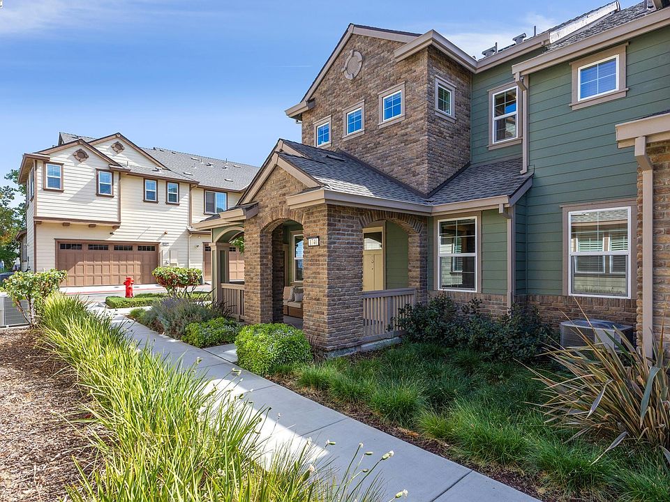 THIS IS IT! Newer NORTH FACING 2-story town home style condo with exquisite natural light in pet-friendly Sunset West enclave. Quiet, corner location adjacent to community green space with mature sycamores. High ceilings, 24 windows with abundant light, engineered wood floors upstairs and down. Farmer’s sink, gas cooktop, stainless appliances, and ample storage. Smart thermostat and security system. Upstairs laundry with sink. Double insulation throughout keeps unit quiet and energy-efficient. Attached 2-car garage wired for EV charger. Guest parking. Close to historic downtown, shops, restaurants, top-rated schools, I-680, Highway 84, I-580, ACE train station, wineries, parks. Welcome Home!