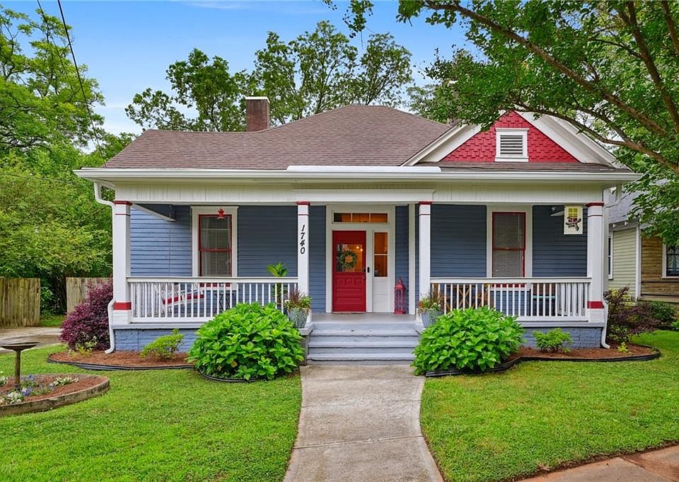 This charming 1909 three-bedroom, two-bath Center Park home located in East Point perfectly balances historic style with modern living. Greet your neighbors from the lovely, expansive front porch, perfect for your morning coffee or relaxing after a long day. The original front door will lead you into a stunning oversized entry hallway with soaring ceilings. Down the hall, the bright, open living room featuring tall windows flows into a renovated kitchen with ample white cabinets, granite countertops, and stainless steel appliances. The open concept layout is great for entertaining. the large primary suite includes a full bathroom with walk-in shower, a double vanity, as well as a walk-in closet and bonus storage space. The historic details of the home are truly impressive with original decorative fireplaces, hardwood floors, windows, and doors. A large, level, fenced backyard with plenty of shade and storage allows you to cultivate your green thumb and is a dog owner's paradise. The home was renovated in 2016 including a new roof, furnace, tankless water heater, electrical, and plumbing. In 2020, the crawlspace was encapsulated and the water service line leading to the house was replaced in 2022. The surrounding area includes highly sought after schools and eclectic eateries such as: Resurgence Hall Charter School, Woodward Academy, Brake Pad, Breakfast Boys, Oz Pizza, Arden's Garden, and more. This gorgeous home is located in the heart of Tri-Cities area, close to the East Point Marta Station and Downtown College park and within a short drive to the Hartfield-Jackson International Airport, Tyler Perry Studios, Porsche, and Delta Headquarters.