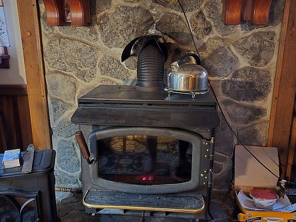 - Fireplace features: Free Standing, Wood Burning Stove, Living Room