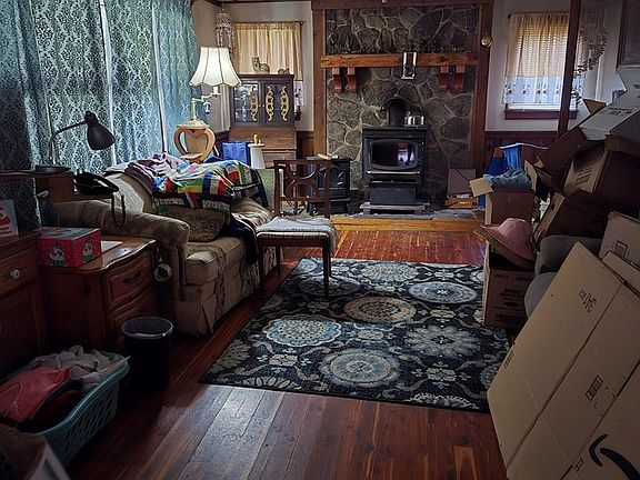 Owner wants to sell ASAP. Home sold as is. Cute, Cozy older home with 2 bdrm, 1 Jack and Jill Bath, sweet living room, larger kitchen w/gas range, new water lines to kitchen, insulated, cast iron wood stove in living room, 2 freezers, all appliances in kitchen. This home has incredible, meticulous woodwork inside crafted by Dutchman. Beautiful hardwood floors. This is a smaller home with charm and character. Numerous outbuildings, also a well with well house for pump, pump needs repair. Great land for survival and hunting. Spring in the mountain captured in pipe per seller. Awesome furniture in home will be sold as time allows. City water in house.