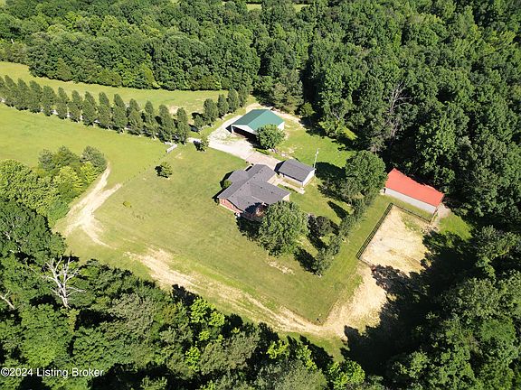 Imagine traveling a scenic driveway through Cleveland Pear trees and green fields to your private brick home. This 3,100 +/- sq-ft 4 bed, 2 bath home with partial basement sits on 12.38 acres with a 50'x54' clear span barn, a 2,640 sq-ft, a stalled horse barn and a detached 26'x32' two car garage. The home features, primary suite with a garden tub, large open floor plan, pantry/basement, good cabinet space, gas fireplace, entertaining area that leads to the deck, hardwood flooring with great privacy. This beautiful acreage is fenced for horses and has good pasture as well as plenty of room for play with the large private back yard.