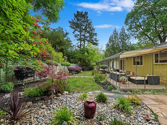 OPEN 5/9 11-1 & SAT, 5/13 1-4! Situated on a lush level wooded lot just a short stroll to downtown, this impeccably maintained, light-filled home offers serene living spaces and impressive updates throughout. The gleaming chef's kitchen boasts striking quartz counters and custom tile backsplash, white shaker cabinetry, stainless steel appliances including a commercial 36” gas range, and a large island with a quartz waterfall edge. The adjoining living room boasts soaring ceilings, a 60” electric fireplace, recessed lighting, and crown molding: this inviting room opens to the entertaining patio and picturesque backyard setting. Elegant with rich spa-like features, the spacious primary retreat was recently updated with a freestanding jetted bathtub, elegant tiled shower with frameless surround, dual sinks with quartz counters, designer floor and wall tiling and beautiful gray cabinetry. A large entertaining deck is perfect for year-round gatherings with friends and family with an option for sun or shade! The private setting exudes a park-like ambience with level lawns, meandering garden paths, and an array of fragrant and colorful foliage. Located just a quick stroll to 12 years of excellent Walnut Creek schools and downtown's world-class shopping and dining!
