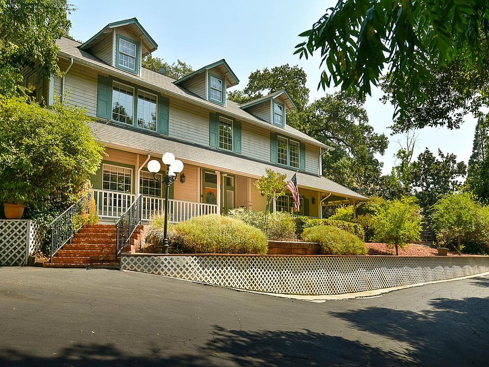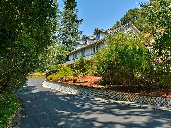 Beautiful home in Llagas valley with character galore! Open gourmet kitchen, with granite counters, elegant custom cabinetry, stainless appliances, and central island. Large bedrooms including spacious master suite with fireplace, walk-in closet, deck, and serene views. Living room with entertaining/bar area, separate family room, high ceilings, hardwood floors. Bedroom and full bathroom on the ground floor. In-ground pool and spa is the central feature of the charming brick patio area. Enclosed screen room gazebo for outside entertaining. Separate detached carriage house with tile floors, extra storage, and upstairs bonus room with kitchen area and full bath. Detached oversized garage and plenty of parking space. Circular driveway. Wonderful creekside location amongst the incredible mature trees. City water! This property is very unique and special!
