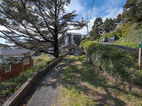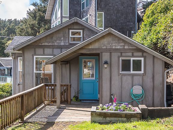 Charming ocean view cottage on double lot in the heart of Oceanside. Sensational ocean views & beach access about a block away. Full renovation in 2008. Studio/1bath, kitchen, living rm & loft on main w/ocean view deck. 1bdrm/1bath, nook & kitchenette downstairs w/separate entry. Beautiful open beam wood ceiling, wainscoting & knotty pine finishes. One of the 1st homes built in Oceanside, fully updated w/one of the longest driveways in the village. Has current STR permit.
