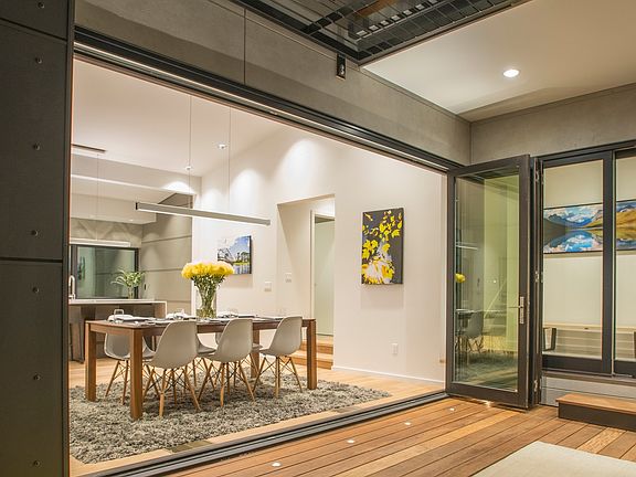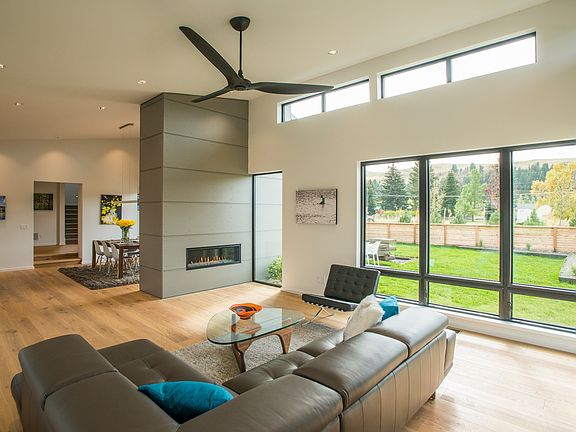 This modern home breaks down barriers between indoors and out, with walls that "float" through glass, leading the owners' eyes to the beautiful Montana landscape. A 15 foot wide bi-fold glass door opens between the living space and the extensively landscaped courtyard, for indoor/outdoor living. The entrance to the home is understated elegance with a custom built entry door including metal inlays and concealed hinges. The open living/dining areas feature a vaulted ceiling with clerestory windows for sweeping views and light, while the wide-plank oiled oak flooring and linear fireplace creates a warm, comfortable feel. The kitchen is truly a gourmet workspace, featuring Bosch Benchmark appliances (European steam oven, true convection oven, built-in refridgerator and zoned induction cooktop), perfect for entertaining along with day-to-day living. All bathrooms feature high-end German/Italian tile and the master bath has an exceptional shower designed for two. Even the powder room shows unparalleled attention to detail with floor to ceiling tile and a custom, locally-built quartz sink and grain-matched walnut vanity. The upstairs flex room is perfect for informal relaxation. This space adjoins the ipe-decked balcony overlooking the courtyard and sunset views. The upstairs guest suite features an unmatched view to the Story Hills. Energy efficiency has been addressed with color-matched LED lighting, Pella Impervia windows, BIB insulation, and zoned high-efficiency heating. The HVAC also features whole home steam humidification, air-conditioning and a HRV system. The home is designed to maximize the sun's warmth in the winter and block it out during the summer, with custom steel sun awnings above southern facing glass. This exquisitely designed and constructed modern home is a must see, please call 406.600.0928 to schedule a showing today!