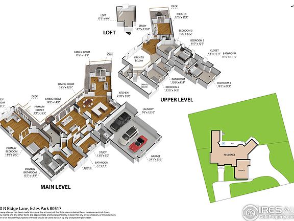 *OPEN HOUSE SAT JUNE 14 11a-1p* Magnificent custom home, created on a panoramic-view lot in this desirable north-end area, with beautifully framed views to Longs Peak, Mount Meeker, Twin Sisters and The Continental Divide. This finely crafted home was built for low-maintenance and offers nearly 5,000sf of living space, accented with custom woodwork, native stone and character-rich hardwood flooring throughout. Soaring great room with warm fireplace, wall of windows to the view and an amazing kitchen outfitted with new Dacor appliances to delight any chef. Friends & family will love the granite island built for visiting, as well as the spacious dining area that opens to the covered deck, perfect for that pre-dinner toast. Luxurious primary suite is an escape in itself with therapy-spa bath, oversized shower and huge walk-in closet, including a lock-off for your valuables, plus adjacent home gym/yoga/art studio. Upstairs, you'll find 4 additional bedrooms for family and guests, as well as a meditation room, 2nd laundry area, versatile loft library and awesome home theatre through secret bookcase doors... Home office, low-maintenance decks, fully fenced yard and an oversized 3-bay garage completes the package. One of the finest homes in Estes Park, let's explore this special offering today, an outstanding value at $1,549,000.