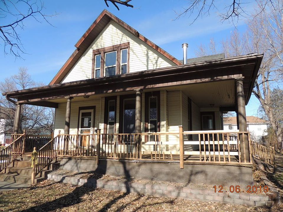 Older style 2 story home has a welcoming wrap around porch and includes main floor 1.5 baths & bedroom. Upper floor features ornate open staircase, 3 bedrooms and a bathroom. Nice corner lot with alley access and a detached 3 car garage. Needs some TLC.