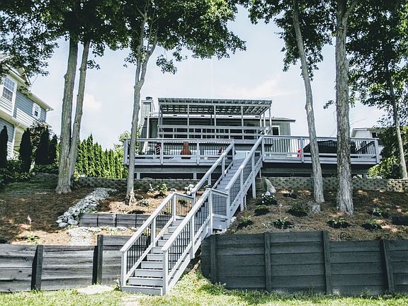 Casual and cozy lake home with over 65 ft of lakefront panoramic views of the sunset. Enjoy boating and water sports with your own private dock and floating lift sitting in over 14 ft of water depth. The upper level showcases an eat-in kitchen, living area, bedroom with a king sized bed and full bath. The lower level has an entertaining area, bedroom with 2 queen sized beds, bedroom with 2 sets of twin bunk beds, full bath and laundry room. Large front yard. New Roof, Deck, Siding, Brick in 2018. New Sun Room addition 2017. Trex Board Dock and Floating Lift included.