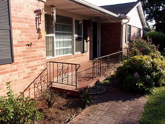 Nice spacious rancher with hardwood under carpet in livingroom and bedrooms. Marble and stone fireplace. Nice utility with cabinets. Big sunroom. Large livingroom with fireplace and built-in shelving. NEW double-hung vinyl windows. Updates include: 2 water heaters, HVAC, roof, cooktop, DW. All new pex plumbing pipes under house. Floored attic space. Detached one car. Handicapped accessible with ramp (can be removed if desired) garage/workshop with carport and slab. Lots of closet space. Charming spanish tiled front porch, large level yard with gorgeous trees.