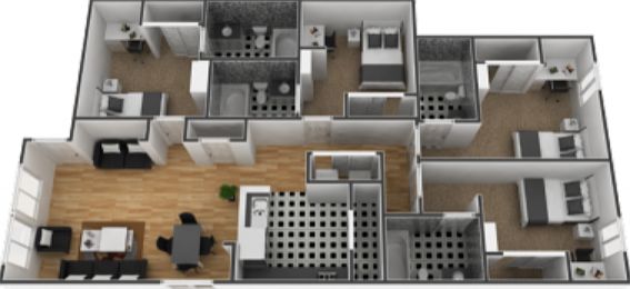 - Exterior features: 24-Hour Emergency Maintenance, Availability 24 Hours, Basketball Court, Exterior Type: Student, Granite Countertops Sleek and stylish kitchen finishes, High-speed Internet Ready, Individual By-The-Bed Leases No need to worry about your roommates' payments, PetsAllowed, Roommate Matching Service Helping you find the perfect living situation, Volleyball Court, Wood-Style Flooring In all living areas for a polished look