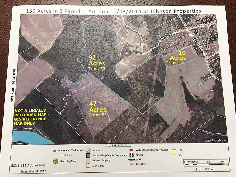 Johnson Properties will be offering 150+/- Acres at auction. Price is for MLS Purposes only. Property will be sold "AS IS, WHERE IS" No Warranties implied. Property is in 3 separate parcels and will be offered that way night of auction. Auction will take place Tuesday October 3rd @ 6:00 PM 48 Progressive Parkway Angier, NC 27501. Tract 1: 10+ AC all clear and currently being tended. Tract 2: 92+/- Ac with over 60 AC currently in the forestry program. Tract 3: 47+ Ac good wooded tract for recreation.