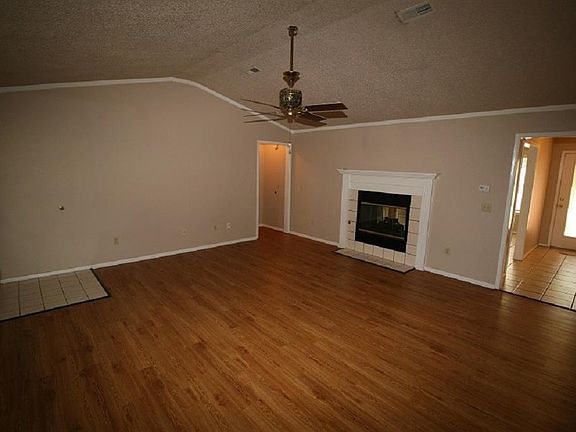 Located near Tyson corporate office. FAUX-wood in living room, Nice carpet in bedrooms. Fenced yard, covered back porch, split floor plan, with ceiling fans and blinds throughout. Double sink vanity, double walk-in closets in master suite, and double-sided fireplace that is viewable from living and dining areas!