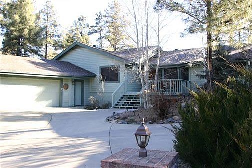 Priced to sell. Lowest sq ft price in Timber ridge subdivision. This fabulous custom home that backs to forest. Open floor plan with great flow. Master has custom tin ceiling with a bay window forest view. Close to downtown historic Prescott. Cedar lined walk in closet in master. Kitchen has slightly used appliances. Kitchen has lots of counter space and lovely island. Hard wood floors adds to this light and bright home. Great enclosed and heated Arizona room( this is where the extra sq ft. is) overlooks charming back yard with included copper water feature. Tasteful painted walls and tile. Large lndry rm. 3rd bdr has 2 sets of doors and closet. Used as a den/suite New heater and much more. Garage will fit 2 cars with removal of cabinets on left side of garage. Furniture for sale.