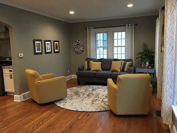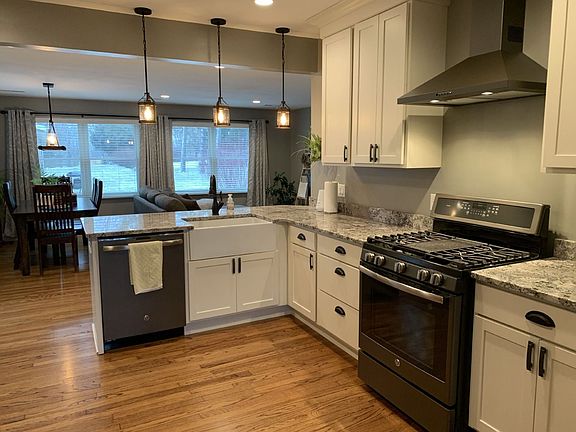 Completely redone in 2016- $100,000 in renovations! 3 Bedroom, 2 1/2 Bath 2+ car garage (720sq ft) *Completely landscaped .4 acre lot that backs up to Murphy Park. *Original hardwood floors throughout-sanded & restained *Original doors with Glass knobs *Completely New kitchen (new location too!) *Granite counters *Walk in Pantry with barn door-made from original butler's door *GE Profile appliances in Slate -includes front load washer/dryer *New dimmable LED can lighting throughout *Removed all radiators and installed new Heat & Air-one on second floor and a separate unit for the main & lower levels *Replaced wood burning fireplace with gas insert. Painted brick & added Shiplap above *New electrical panel and most electric is new