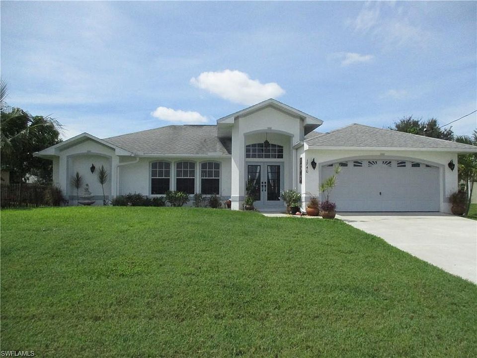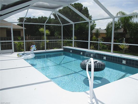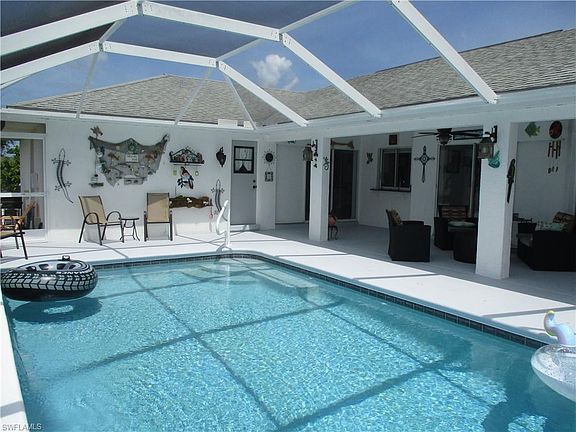 Gorgeous! That's what describes this POOL home. Meticulous owners. Light and Bright. Double Door glass covered entry. Lush tropical landscaping and spacious lanai area. There are Coconut, Banana and Avocado trees on the property. Pool is 16x24 and features a waterfall. Pass through from the kitchen, and the doors pocket completely. Back yard is fenced and very private. White cabinet kitchen, with stainless appliances and beautiful upgraded granite counter tops. High ceilings throughout living/dining and family rooms with plant shelves. Tile floors and all three bedrooms have walk in closets. 2nd bathroom has a door out to the pool and the owners suite has a slider out to the pool as well. On suite has duel sinks. A/C is just 3 years old and so are the appliances. Washer and Dryer just 1 year old. Laundry room inside. Garage floor is painted. Owners use the family room as a dining area but, it is large enough for a POOL TABLE. Neat and clean home. City water and sewer.