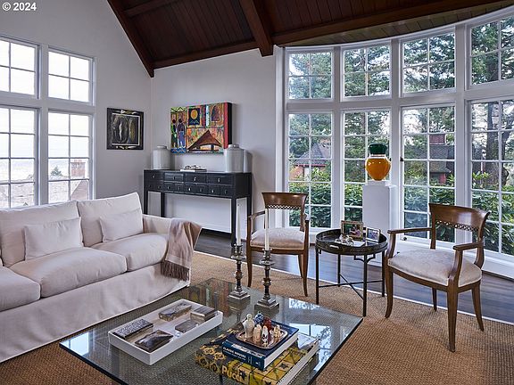 Set in an extraordinary location with commanding 270-degree views, this architectural gem has been brilliantly reimagined for contemporary living. Design-savvy owners have meticulously revamped each space, creating a stunning home that respects its historical roots while embracing modern elegance. A true blend of historic mastery and present-day chic, redefined for life today.The home's views that are as stunning today as they were when the Lewis and Clark Observatory and Cafe claimed this spot for the "most magnificent panorama on the American continent." The thoughtful redesign includes a modernized layout that maximizes these vistas while introducing contemporary luxuries.Outside, the property features a flat, manicured lawn set up perfectly for evenings around the fire pit or outdoor dining, or some good lacrosse work outs, all enclosed by tall hedges that ensure privacy. Unique to this home is a driveway that provides convenient access from two different streets, enhancing both functionality and privacy.This home is on the market for only the second time, offering a unique chance to own a piece of Portland's architectural history, now re-envisioned for 21st-century living. Ideal for those who appreciate the blend of classic architecture with modern design in one of the city's most coveted neighborhoods. [Home Energy Score = 1. HES Report at https://rpt.greenbuildingregistry.com/hes/OR10230957]