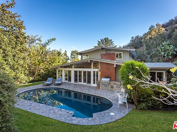 Sited up a long, gated drive is this stylish Modern Bel-Air oasis offering a wide-open floorplan, high-pitched, beamed ceilings, walls of glass, banks of French doors, wood floors and tasteful appointments in a layout that makes sense for today's relaxed lifestyle. Voluminous living room and adjacent spacious dining room open to backyard. Huge cooks kitchen w/ top tier appliances, abundant workspace and informal dining area which open to a family room. Secluded den w/ built-in bookcases & pretty garden views. Powder room, guest BD w/ BA and laundry area complete the 1st floor. Direct access to 2-car garage. Upstairs, 3 light-bathed BDs incl. a wonderful principal suite w/ sweeping cyn/mtn/reservoir vistas & restorative spa BA. Private backyard, uncommonly spacious, graced by fruit trees, mature landscaping, grassy areas and a saltwater pool. Just up the street from the Bel-Air Hotel, to UCLA and to shopping/dining in BH/Westwood. Warner Ave School.Ask Agent re: plans for expansion.