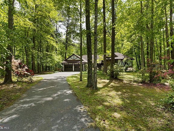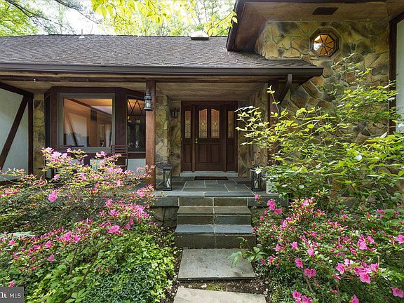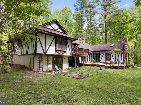 This is a one of a kind custom contemporary home with notes of Mid -Century Modern and Tudor styling throughout. Beautiful stone floor to ceiling fireplaces (wood burning) grace the living room and family room. Tucked in the woods on a 3.6 acre lot, you will feel at one with the site. Birds, so many blooming bushes and flowers and peace and quiet can be yours. The primary suite features a separate room which could serve as an office, nursery or library. Updated bath has huge walk in shower. You will also find a deck off the bedroom overlooking the gorgeous back yard full of trees. 2 other large bedrooms are on that level with a hall bath. The lower level is completely finished with a full bath and a huge recreation room that walks out to the back yard. The main level has a step down living room and a step down family room off the kitchen with vaulted ceilings. An open floor plan throughout has lots of windows looking out into the treed yard giving you the calmness that only trees can bring you! If you are looking for something different from all the other houses out there, come and see what custom quality is like as well as an open interesting floor plan on 3 levels . Sold in AS IS condition , yet everything is in good working order. If you are looking for the "real thing" you will appreciate the stucco exterior, stone wall fireplaces, real hardwood floors, BIG two car garage and slate patios and custom quality.