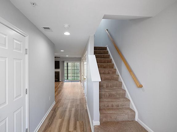 Tucked away in sought after Twin Arch Crossing- This 3 Bedroom 2 Full Bath 2 Half Bath Garage Townhome boasts over 2000 finished sqft. The open main level truly highlights the 4ft bump out with entertaining space that extends outside on the sizeable back deck. Upgraded kitchen cabinets and countertops with a dream pantry! The perks of the upgraded 4 ft bump out continue to display in the HUGE Master Suite with his and her vanity, large corner soaking tub, and walk in closet. All three upstairs bedrooms feature an upgraded vaulted ceiling. Newer Luxury Vinyl Flooring in Basement with Gas Fireplace and large mounted Samsung TV that conveys. Walk out to paver patio on lower level and flat back yard. Every level has a bathroom! Furnace, Outside HVAC Unit, Water Heater & Washer and Dryer have all been replaced within the last 3 years. Truly a blank slate ready for you to make it your own!