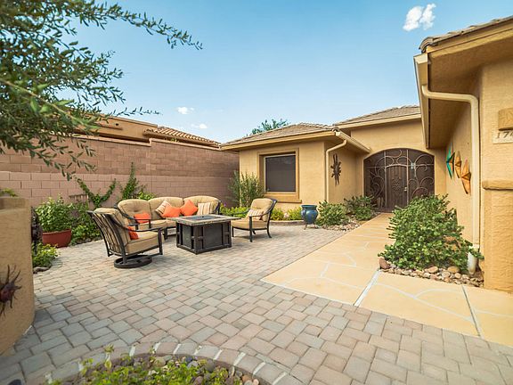 You'll be impressed from the moment you drive up to this gorgeous home. The large front paver courtyard beckons you to sit and soak in the magnificent view of the ever-changing Santa Ritas. Step through the security door into a well appointed alcove and from there into a space filled with graceful arches that define spaces while allowing them to flow seamlessly. Everywhere you look you'll see features galore, including: tile floors in all of the main living areas, granite counters in kitchen, SS appliances, solar tubes,high-end landscaping front & back, and much more (see a complete list in associated docs). The screen in AZ room adds living space and overlooks a backyard surrounded by common area. Bring your most discriminating buyers--they won't be disappointed. OWNER/AGENT