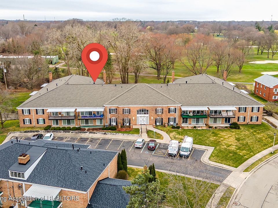 Rare offering for this popular Chateau Louise Condominium! This spacious 3 bedroom and 2 full bath unit is nestled on the Lansing County Club golf course! The 2nd floor unit includes 1600+ square feet. Enter the secured foyer with a dramatic curved staircase to the second floor or use the elevator! The underground parking includes 1 car parking spot and if extra spots are available, you can pay for another. A convenient laundry is next to the unit with a sorting area too! Lovely foyer entry with a large living room, anchored by a gas log fireplace enhanced with a mantel, adjoining dining including access to the balcony overlooking the fairway/green. An efficient kitchen with informal eating space and all appliances are included. Enjoy the split floor plan with one bedroom and a full bath on one side and on the other you will find 2 bedrooms and an additional full bath with access to the largest bedroom complete with a walk-in closet. The furnace room is off the main hallway. Also, there is a second-floor storage room for each condominium. $423 monthly fee includes exterior maintenance, fire, insurance, heat, lawn care, snow, removal, trash, and water. Enjoy this desired location in a quiet neighborhood with access to shopping, eateries, highway and more.