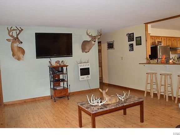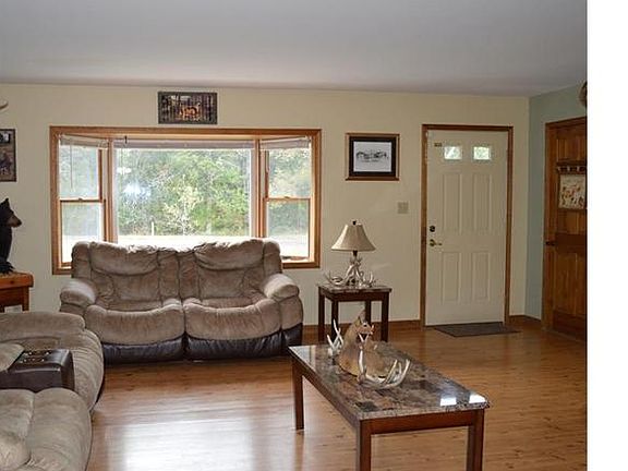 Amazing ranch home with an Open Floor Plan on 5 acres in an upscale subdivision. This eat-in Kitchen has custom cabinets, breakfast bar, ceramic tile, stainless steal appliances, and a walkout to the new private, secluded, maintenance free, back deck. The living room is open to the kitchen and has wood flooring and a large bay window for lots of natural light. Large Master Suite has double closets, a spacious bathroom with separate tub and shower, and new flooring. The two other main floor bedrooms are also Extra large. WOW is the basement with a unique wood bar, full bathroom, large den or 4th bedroom, work area and walkout. To add the finishing touch is the oversize, very clean and organized, 2 car garage. Owners have replaced the roof, added all new flooring and the breakfast bar, painted, finished the basement for great entertainment, and added the extended, 2 car wide, concrete driveway. The hunter will feel at home here.