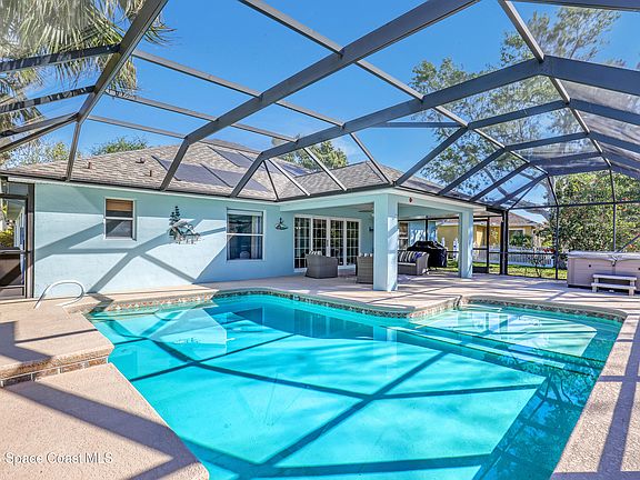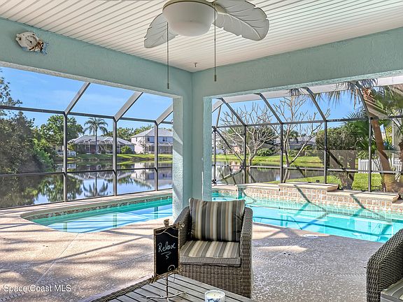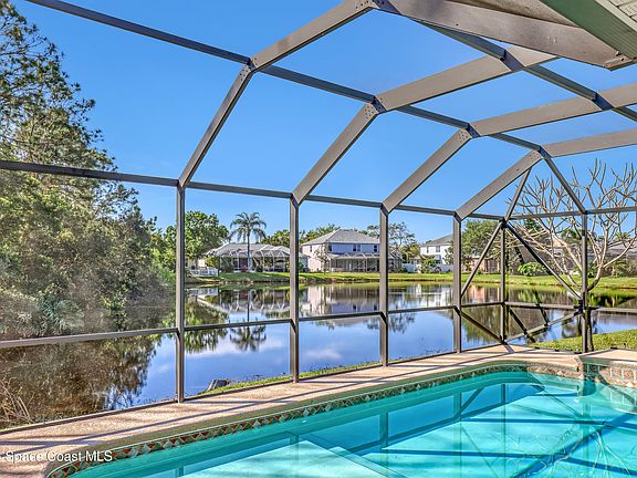 This home has it all!! $135k in upgrades!! Solar shingle roof 2023, Large outdoor screened pool/deck oasis overlooking the lake/preserve. Pool is heated with a shallow area for cooler sunbathing. Front porch screened too! 200 amp electrical srvc/net metering. Garage has 30 & 50 amp circuits for charging car/rv. Soft water filtration system, partially fenced yard, recent exterior paint. Energy efficient water heater 2023. 4 bed/4 baths! Owner Suite has a beautiful view of the pool/lake and 2 Full separate bathrooms connected by large walk thru closet. A half-bath en-suite was added creating privacy for guest, teen, or office. Vaulted ceilings, custom lighting, quartz counters, glass backsplash, plenty of cabinet space, laundry room. Sliding chalk barn door added to dining/kitchen convenient for recipe's, or to teach the kids. The main bathroom has a door accessing the pool area. Community playground, newer. Short drive to beaches, I95, shopping/dining. Great schools too!!