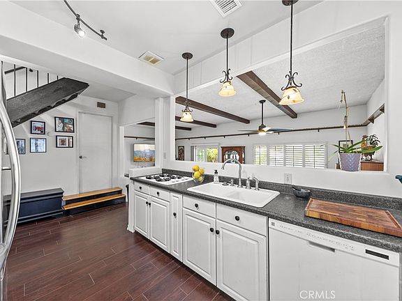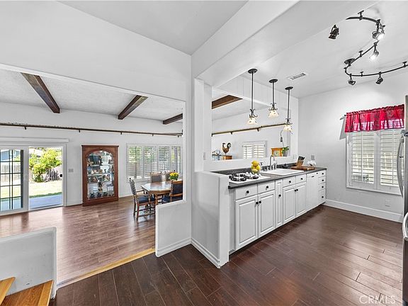 Experience elevated living in this charming two-story home located in the scenic city of Lake Elsinore. With 3 bedrooms, 2.5 bathrooms, and 1,792 sq ft of living space on a 5,663 sq ft lot, this home offers comfort, functionality, and beautiful design details throughout. The kitchen features stainless steel appliances, a built-in wall oven, and a matching microwave—flowing seamlessly into the freshly painted dining area and family room. Exposed wood beams and large windows fill the space with natural light, while double doors lead to a covered backyard patio and green lawn, maintained by a sprinkler system and enhanced by fruit trees—perfect for relaxing or entertaining outdoors.