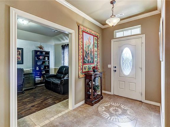 Spacious 3 Bedroom, 2 Full Bath Home with 3 Car Garage. Storm Shelter in garage floor. Open floor plan with Kitchen, Dining area and Living Room with Bar Together. Separate Office located off foyer. Beautiful Tile floors with recently installed wood look tile in Living Room & Office. Carpeted Bedrooms. Installed Solar Tubes and Gas Fireplace with Electric Start. Large Master Bedroom with Australian Walk-In Closet, Whirlpool Tub and Separate Glass Shower. Large Covered Patio, with Inviting Pergola with Lights and Sun Shade. Located on a Corner Lot with Trees and Available for Immediate Move In. Close to Shopping and Schools. Two Blocks from the Elementary. Neighborhood has a Clubhouse & Pool. Come See It Today and Make It Yours!