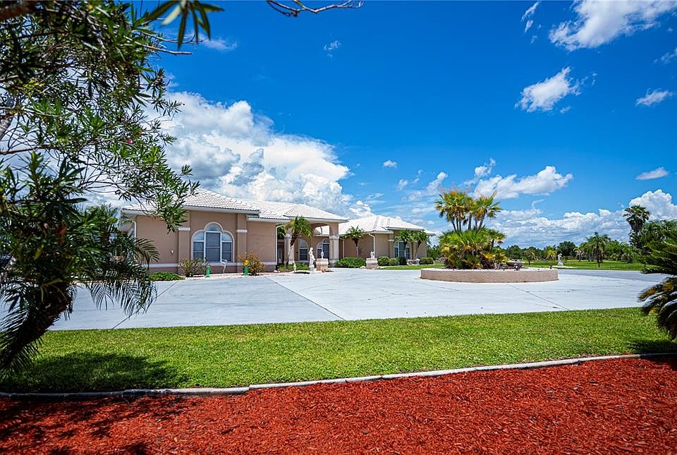 This Beautiful Custom Home is Waiting for You! Welcome to this exquisite 5½ acre estate nestled in the heart of the deed-restricted equestrian community of Prairie Creek Park featuring manicured grounds, serene pond with a lotus-style fountain visible from the 4 spacious bedrooms, and circular drive that provides ample parking and captivating night lighting. The gated entrance on a tranquil cul-de-sac offers peace of mind with the house positioned along one of the many bridle trails. The tile roof, concrete curbing around landscaped features, and grand entryway will leave a lasting impression. Step through the double-door entry into a magnificent 5,548 sqft residence into a formal foyer featuring fine architectural finishes, elegant crown molding, decorator alcoves, and a soaring 20-foot ceiling. The abundant natural lighting and low-level corridor lighting set the stage for entertaining or relaxing in the beautiful living room with direct access to the beautiful pool/lanai area through expansive sliding glass doors. The screened-in pool deck, equipped with a heated saltwater pool and hot tub, private bar with a sink and built-in refrigerator, invites year-round entertainment. Off the entry, a private office space perfect for remote work or an additional bedroom, is next to the luxurious Owners’ Suite. This personal sanctuary boasts private pool access, a coffered ceiling, dual spacious California closets, and an opulent en-suite bathroom featuring a jetted jacuzzi tub, dual sinks, large linen closet, and a huge Roman shower. Enjoy the tranquility of your surroundings in your personal retreat. An exquisite dining area beckons you into the heart of the home: a well-appointed kitchen that embodies luxury with top-of-the-line appliances, a Sub-Zero refrigerator, double oven, and vented cooktop in the kitchen island, the modern, seagrass-hued Corian countertops and two-tone cabinetry exude sophistication. There is also a breakfast bar, full-sized dining area, and generous walk-in pantry. Adjacent to the kitchen, a 30X20 foot great room with wood-burning fireplace, features a large panoramic window that provides breathtaking views of the property; a large gazebo, outdoor kitchen with BBQ pit, and local wildlife or equestrians on the trails - an entertainer's dream. The great room has a closeable access to 2 spacious bedrooms, separated by a full bath, each with private views of the pond, fountain, and the great outdoors. A genuine in-law suite complete with a connected bath and private screened-in patio offers lovely pond views. Additionally, a large laundry room, with substantial storage, a wash sink, and built-in ironing board, provides easy access to the expansive 3-car garage large enough for large SUVs and includes automated screen doors to keep insects at bay. Additional highlights include; a separate garage/storage building on the property that can house a large vehicle and all of your lawn tools and equipment, a central vacuum system, Generac generator, upgraded ceiling insulation, new hot water heaters, and three new AC units (2023), ensuring comfort and efficiency. Experience the pinnacle of luxury living; privacy, access to hiking and horseback riding trails. Punta Gorda's airport, vibrant downtown, boutiques and dining options are just 15 minutes away, with easy access to I-75 and boating, fishing, and golf nearby. Don’t let this picturesque estate pass you by – schedule your exclusive tour today!