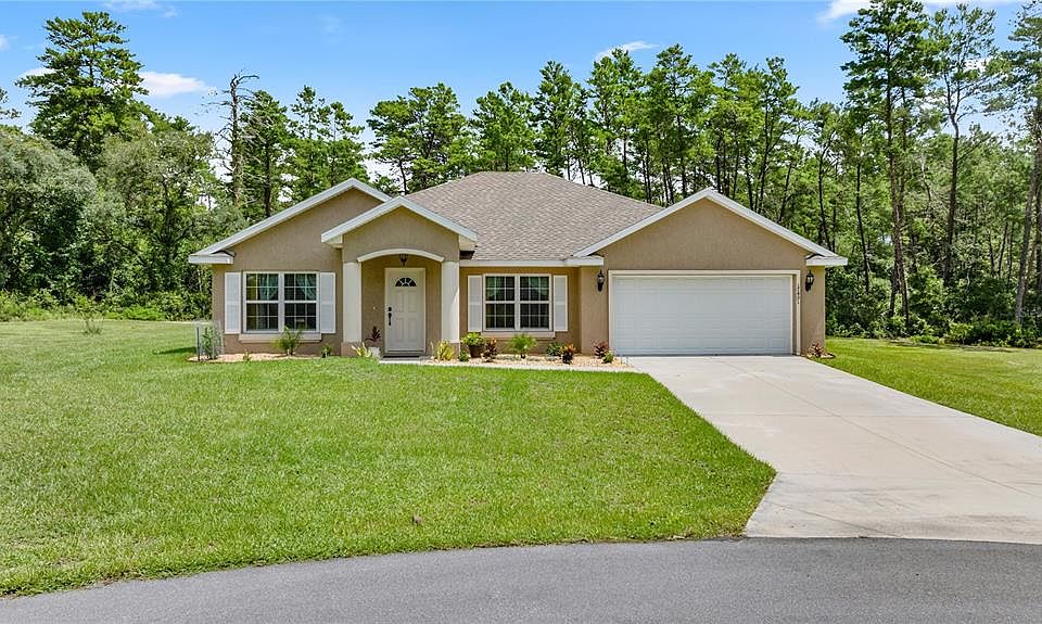 Look no further! This gorgeous and elegant home sits on 1.29 acre lot with protected green space behind the property and located on a cul-de-sac. As you enter the home, you are greeted by a beautiful and spacious layout with separate living and dinning area, a split floor plan with 3 bedrooms, 2 baths, 2-car garage. The primary suite is a retreat with tray ceilings, his and hers walk-in closets, a master bath for a king with a stand-in shower and a luxurious bathtub to unwind after a long day. A gorgeous kitchen with hard wood cabinets, beautiful and elegant white quartz counter tops and white tile backsplash, a breakfast bar, ideal for entertaining. Energy efficient Frigidaire stainless steel appliances, a newly installed Tankpac water filter system. The laminate floors in the common areas and ceramic tile floors in the wet areas provides durability and easy maintenance. Enjoy the serenity and the green space as you step outside the extended lanai with no rear neighbors. Home is partially fenced. No HOA.