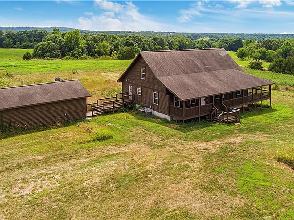 Country living at it's finest! This gorgeous log home with wrap around deck sits on 20 acres with a 40x60 barn. Barn floor is gravel and is set up with electric and water. Detached garage features 220 plug and 30 amp box for RV hookup. Cool off after a long days work in your spring fed pond or make the 10 min drive to Big Sugar Creek for swimming, canoeing, kayaking, and fishing. Brand new Roof, Brand new flooring throughout as well as brand new water heater.