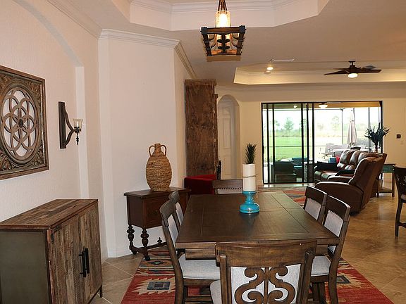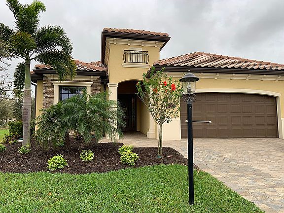 corner lot! Sunset view. Located on 8th green @ Lakewood national golf course. It's like living in a luxurious Italian Villa! An expansive 2,246 square feet of living space, featuring 3 bedrooms + den for family & guests alike. The 2 full bathrooms The lavish master suite with his & hers walk-in closet The master bath features a frame-less glass enclosed shower & Roman Tub. The large kitchen opens to a light and airy great room and dining area. The covered lanai with outdoor kitchen perfect for entertaining. Located in Lakewood National Golf, Tennis, and Pickleball community. featuring 36 holes of bundled golf designed by arnold palmer. community offers poolside dining, resort-style lagoon and lap pools, tennis pro shop, pickball and bocce ball, staffed fitness center, aerobics & Pilates studios, Full service spa get your hair and nails done or a massage and facial right in your own community, year-round social calendar!! enjoy parties, card games, live music and friends inside Lakewood National golf club. Construction features: steel reinforced concrete block construction. hurricane impact glass windows, concrete roof tile, brick paver driveway, garage door keypad , crown molding in main living areas. patio area has a roll down sun screen. This home is a smart home: preheat your oven, set your thermostat, open your garage and front door all from your cell phone. This home is an Isabella model finished construction in 2019 located on the 8th green of the commander golf course in Lakewood National