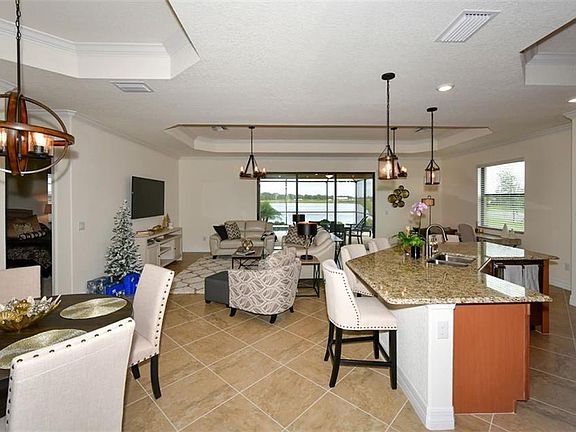 Gorgeous new single family home offers 2 bedrooms, plus a den that has been set up as 3rd bedroom, two and a half baths with private pool, outdoor kitchen and stunning lake views located in the sought after Golf Community of Lakewood National. This property boasts outstanding amenities with plenty of room for the whole family! Functional floor plan lends itself to fun and enterntainment in doors and out. Chic fine furnishings thoughout, master has king bed and two additional bedrooms each with a queen bed, vaulted ceilings, granite counter tops, and large soaking tub. Enjoy the magnificent view of the lake as you walk through front doors. Relax and unwind in the pool while you cook, watch your favorite game on the outdoor TV and entertain guests in the fully functional outdoor kitchen with built in grill! This home is the perfect vacation residence. Navigate the new 36 hole Arnold Palmer designed unique and challenging golf course and enjoy resort style living in Lakewood Ranch's newest golf Community! AMENITIES INCLUDE CLUBHOUSE WITH RESTAURANT AND BAR, FITNESS CENTER, RESORT STYLE SWIMMING POOLS WITH OUTDOOR GRILLE TIKI BAR AND POOLSIDE SERVICE, A FULL SERVICE SPA , TENNIS COURTS, BOCCE BALL AND MORE! Golf/Membership transfer just $214! All you pay is cart fee! Easy access to I-75, local shopping and dining, University Parkway, Sarasota Airport, Gorgeous Gulf Beaches and all that Lakewood Ranch has to offer.