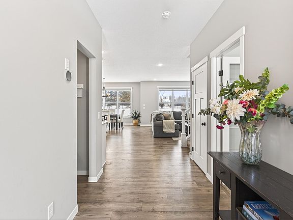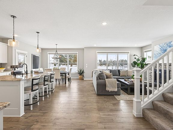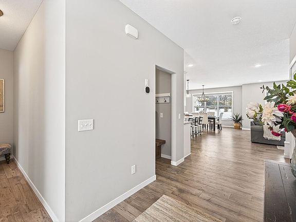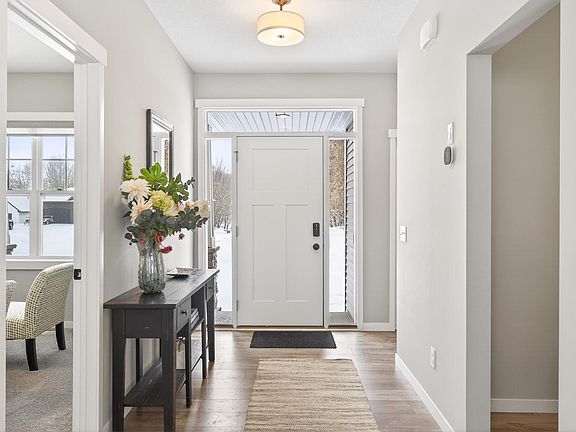 Welcome home to this stunning two-story located in Ham Lake, conveniently close to Hwy 65, shopping, and restaurants. Built in 2024 by TH Construction, this better-than new home sits on a spacious 1+ acre lot and features a welcoming front porch, a 4-car garage with built-in shelving, and over 2,400 finished square feet with an open, functional floor plan. The main level boasts a gorgeous kitchen showcasing classic white cabinetry, granite countertops, center island, tile backsplash, stainless steel appliances, and a walk-in pantry. The living room is anchored by a cozy stone gas fireplace, creating an inviting gathering space. There is also a flex room ideal for a home office. Upstairs you’ll find four bedrooms, including a spacious primary suite with walk-in closet and private en-suite featuring a double vanity and tiled walk-in shower, plus upstairs laundry and closet organizers in every bedroom. Enjoy all the extras already completed for you—landscaping, in-ground irrigation, fully fenced backyard, raised garden beds, 10x20 shed, maintenance-free deck, wider driveway, LVP flooring on the main level, window treatments, washer and dryer, iron filter, water softener, Wi-Fi door locks, security cameras, and doorbell. The unfinished basement offers 8-foot ceilings and additional square footage, providing a fantastic opportunity to finish and make it your own. A rare opportunity to own a move-in-ready home with acreage and upgrades already done!