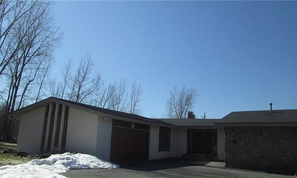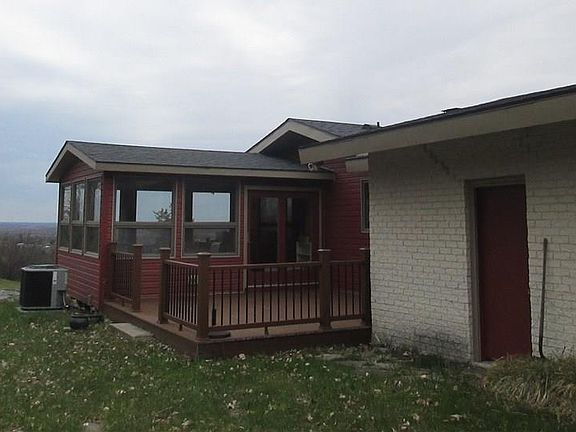45 acres of privacy @ the city's edge.1976 sunlit filled,custom built 2 level ranch w/5 bedrooms,3 new bathrooms nestled in the side of the hill.Unending views of the city to the lake.3580 finished sq ft w/stone, brick & vinyl exterior,wood mode eat-in kitchen w/cabinetry galore.New appliances,center island w/new granite counter tops,pantry & cozy family nook.Huge sunken living room w/white washed vaulted ceilings,floor to ceiling stone fireplace w/wood insert & open staircase to lower level.Living room w/new plush wall to wall carpeting opens to 1 of 2 glassed in sun porches.Formal dining room opens to 2nd sun porch w/hot tub hook-ups.Huge master suite w/outdoor entrance & small sun porch,2 new bathrooms & 2 generous sized bedrooms (1 perfect for office/playroom).Awesome lower Tudor style family room w/2nd stone fireplace & wet bar.Double sets of sliding glass doors to patio.2 bedrooms & 3rd new bathroom.Full extra high basement,recent nat gas forced air furnace & hot water heater,central air,recent roof & holding tank. 4-7 car barn/garage w/wdstove.No water & sewer bills,no city taxes,heat budget only $159/month.Well priced gem rarely found this close to city w/all the amenities.