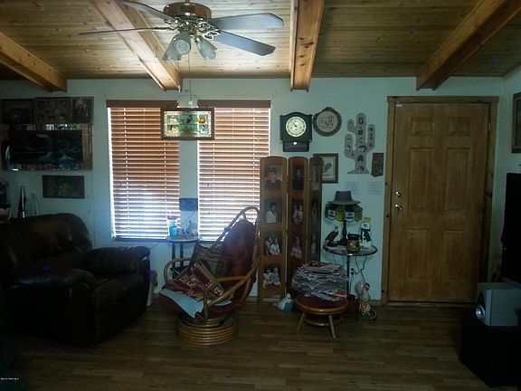 Rustic and charming log home backs and has access to BLM land! 2 bedrooms plus a den/office. Tongue-n-grove beamed ceiling,knotty pine doors, vinyl wood flooring and faux wood blinds. Trex deck with security door. Insulated 24 x 24 garage/workshop has 220v. Security system in home AND garage. 2 separate carports and 2 storage buildings. Nicely landscaped with stacked retaining wall. Large corner lot offers privacy and nice views. MOTIVATED SELLER.