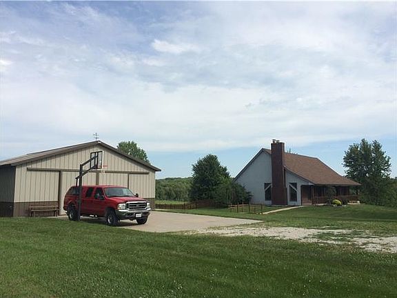 Great reverse 1.5 story, 4 bedroom, 3 bath, home located near Smithville Lake in Kearney School District. Over 4 treed acres with in-ground pool, pond, and 36'x45' Morton building with concrete floor. Family room. 3 car garage. Large deck and patio area around pool for entertaining. Kitchen with bar area, island, and lots of cabinets. Dining, kitchen, and entry with wood flooring. Huge great room has cathedral ceiling and woodburning fireplace. Main floor laundry. Roof and HVAC new in 2010. Pool liner new in 2015.