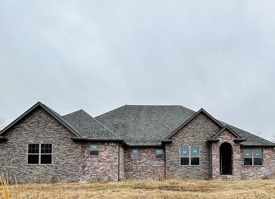 Incomplete new construction waiting for your final touches to make your dream home. BY APPOINTMENT ONLY! Beautiful Brick and Stone, 3400 sq foot heated and cooled, 4 bedroom 3 1/2 bath with 4 car garage (insulated doors) 9.75 acres on Spavinaw Creek. This home has 1000 gal buried propane tank, septic tank installed, 400 Amp service will provide plenty of power to add a shop, HVAC electric with propane backup, 10yr parts and labor warranty installed,complete with ductwork sprayed with foam insulation, exterior walls and ceiling are foam insulated, interior walls insulated with batts for noise control. Exterior includes gutters. Great open concept with a large walkin pantry. Master closet is a concrete lined storm shelter. All bedrooms wired for wall mount TV. Plumbed for central vac, wired for aprox 63 can lights, additional breaker box in laundry to add on. Plumbing and electric is all roughed in, sheetrock textured and primer. Great private location, beautiful view,8 mi to I49.Generator and Central Vac installed