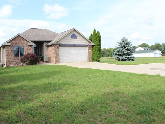 Don't wait to check out this Just East of Howard City 2.50 acres of land 3 Bedrooms and 2 full baths on the Main floor. The Master bedroom and bath with a jetted tub and a separate shower, kitchen and dining area with a deck off the back, 2 stall attached Garage and a full basement unfinished just waiting to be finished if needed. There is a two story hip roof barn with an unfinished loft area heated office, man cave or She shed with a Bathroom with shower