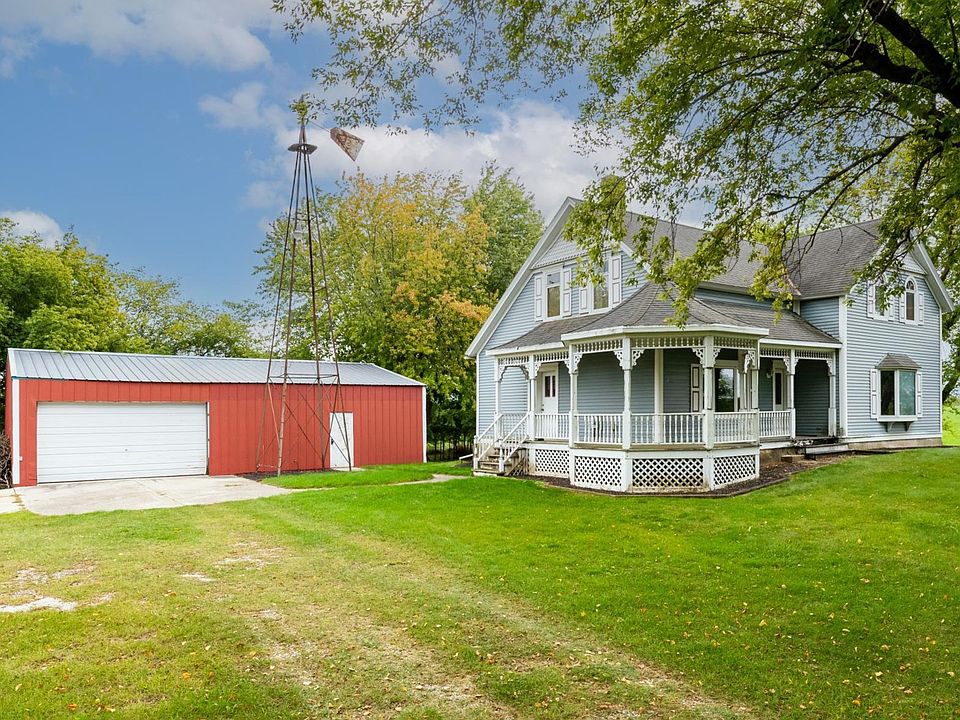 Enjoy the quiet & tranquil evenings out in the middleof the country. Watch the sunsets and the colors change on the large wrap-around porch.Wonderful Victorian home that has been tastefully remodeling throughout theyears. 4 huge bedrooms, 1 of which is set up for an upstairs family room.Features include hardwood floors, unique ceilings, inlaid lights, arches,fireplace, French doors, open staircase, huge windows, sunroom is open tothe lower level & has massive windows overlooking the backyard, largebedroom closets & more. Great rec room in the lower level has patio doorsthat walkout to a backyard patio. Shop/garage is partially heated (currentowner hasn't used furnace in 16 yrs), insulated w/220. Prior owner was a builder & did many of the updates. Priced to sell as-is.