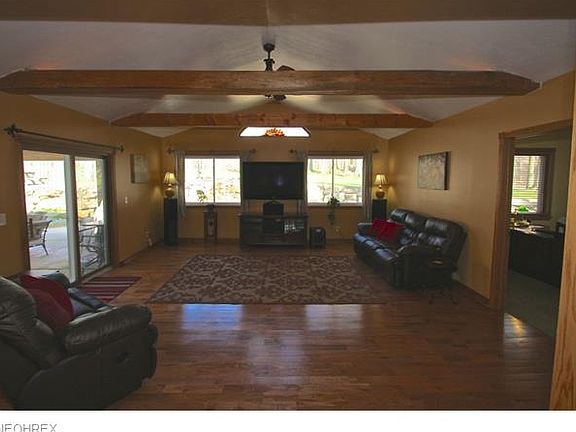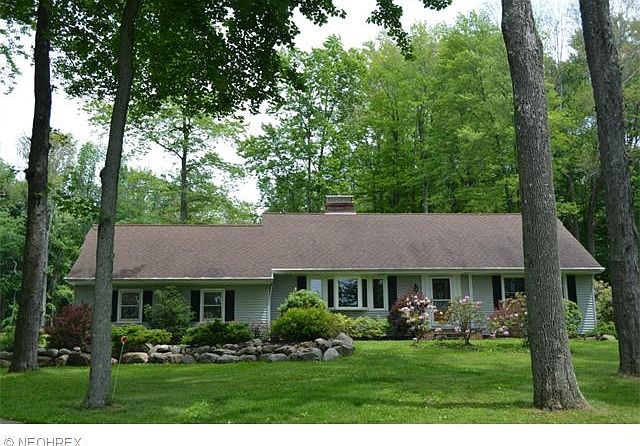 Welcome to privacy. Charming Cape Cod has been totally remodeled from top to bottom and situated on 5.58 rolling acres over looking beautiful landscaping retreat w/pond, fountain and waterfall views. Beautiful 3 bedroom, 3.5 bath home. Welcoming kitchen with generous eating space offers granite counter-tops, with breakfast nook, farm sink, gas fireplace, built in hutch, open floor plan which flows in the step down vaulted family room with a first floor office. Sliding glass door leads you out onto your stamped concrete patio. Enjoy your first floor master suite with tile shower. Large bedrooms on the second floor with a lots of closet space and full bath. Full finished walk out lower level with family room w/ stone fireplace/rec-workout room, full bath, plus steps leading you out to the garage area. Energy efficient (three heating sources) Many newer features... updated mechanical's, electrical, plumbing, Vinyl windows, home addition- family room, office, 1st floor laundry and much much more. Two car attached garage with walk up attic storage, plus a huge out building, great for storage or extra cars. Kenston Schools & just minutes from the freeway.